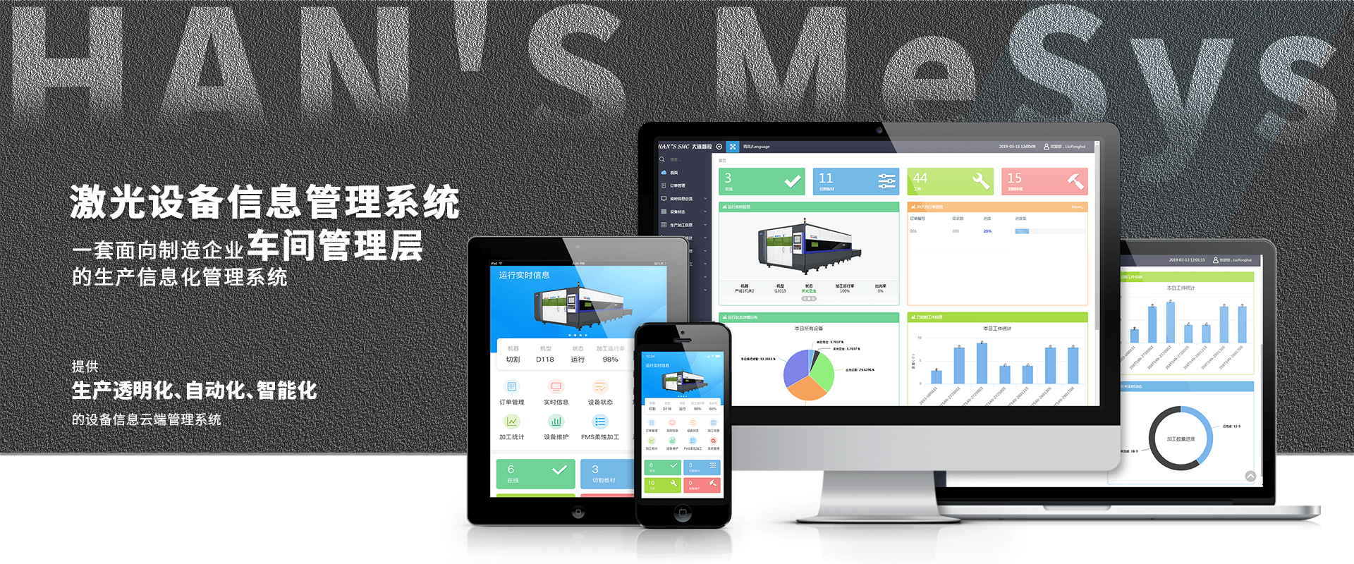 Han’s MeSys激光設備信息管理系統(MES軟件),是一套面向制造企業車間管理層的生產信息化管理系統??梢詾槠髽I提供包括訂單進度實時監控、設備狀態管理、生產數據管理、零件損壞維保管理和FMS自動生產線監控等管理模塊,為企業打造一個全面化信息管理系統。