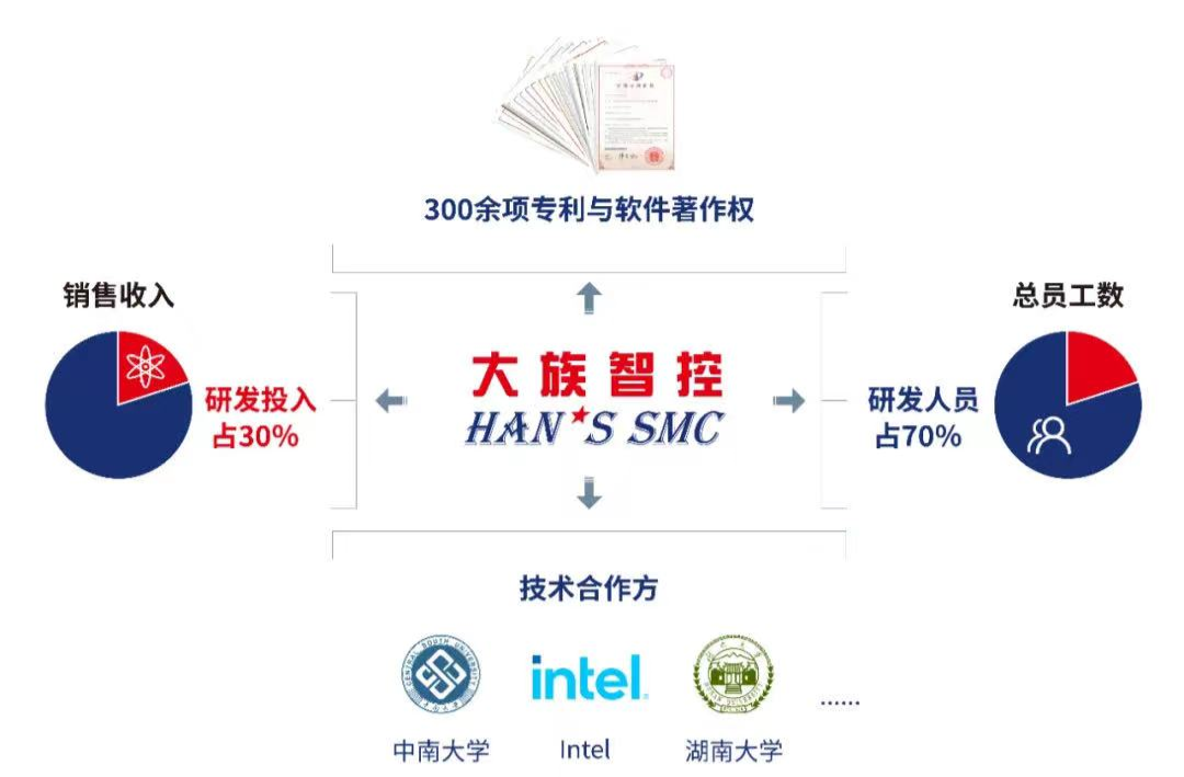 大族智控是智能制造領域一家具備核心技術競爭力的高新技術企業,公司目前擁有300余項專利及軟件著作權,研發人員占比超過70%,研發投入占銷售收入的比例高達30%;