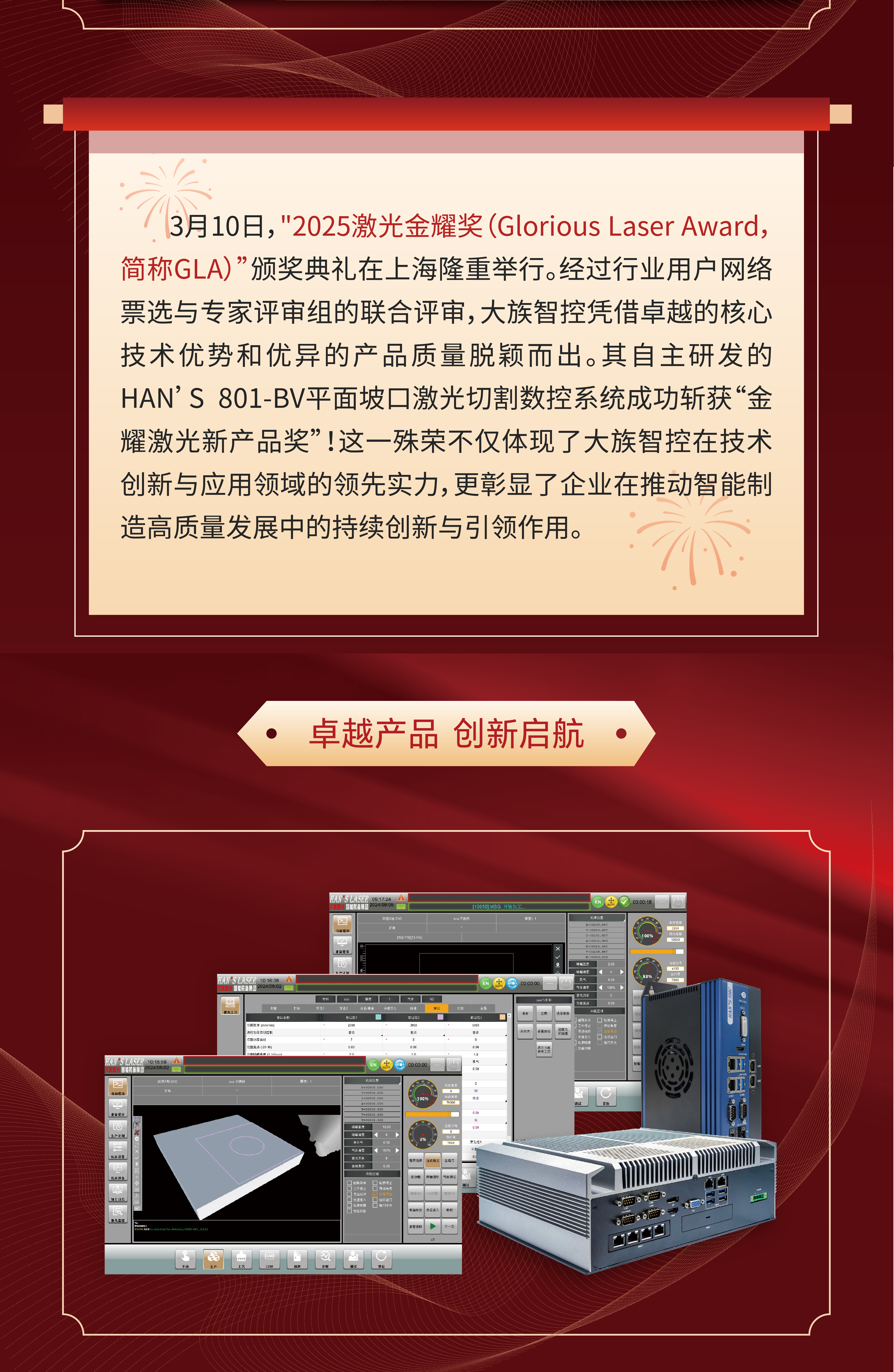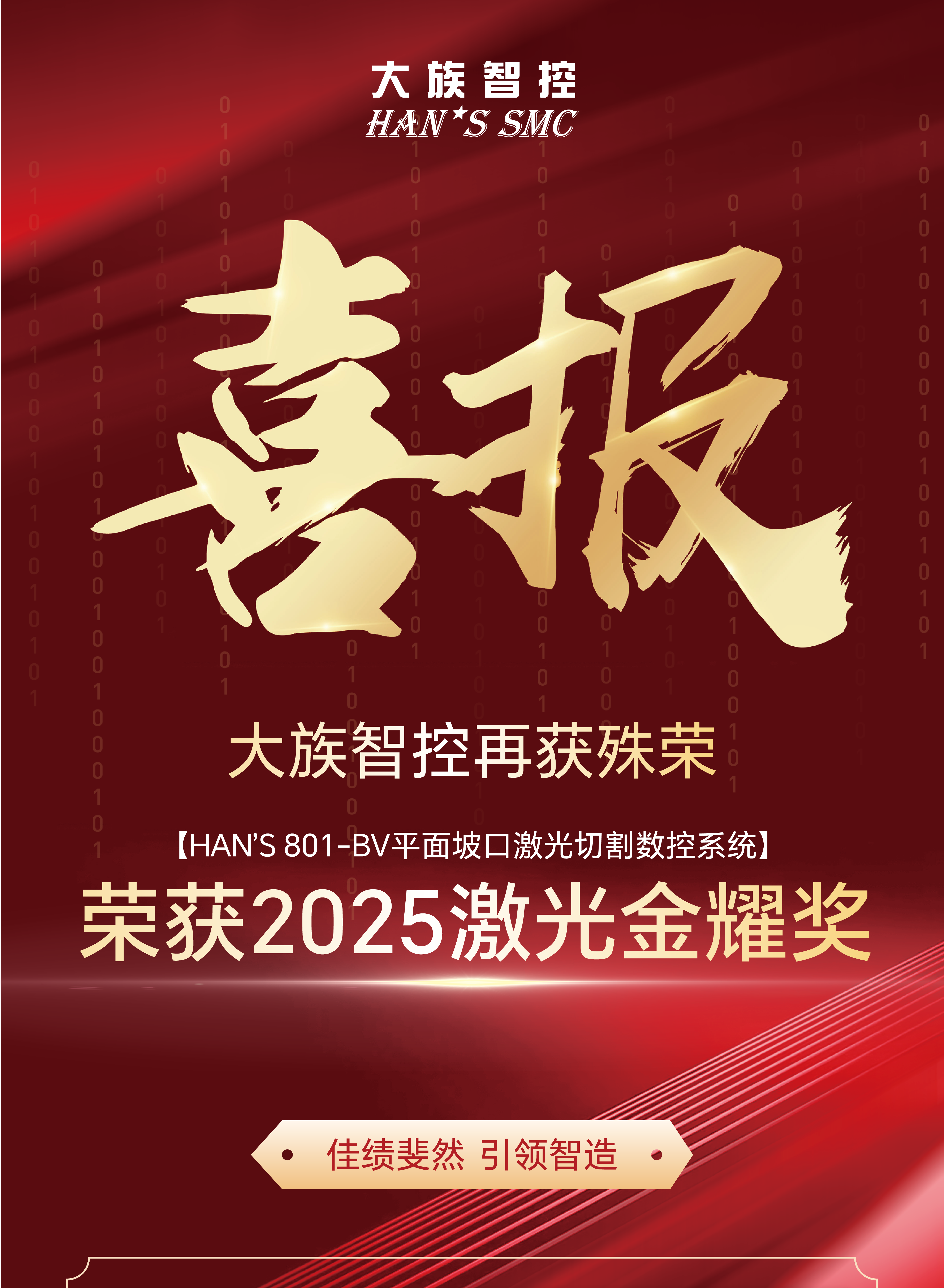 喜報丨大族智控再獲殊榮,HAN'S 801-BV數控系統獲評2025年激光金耀獎!