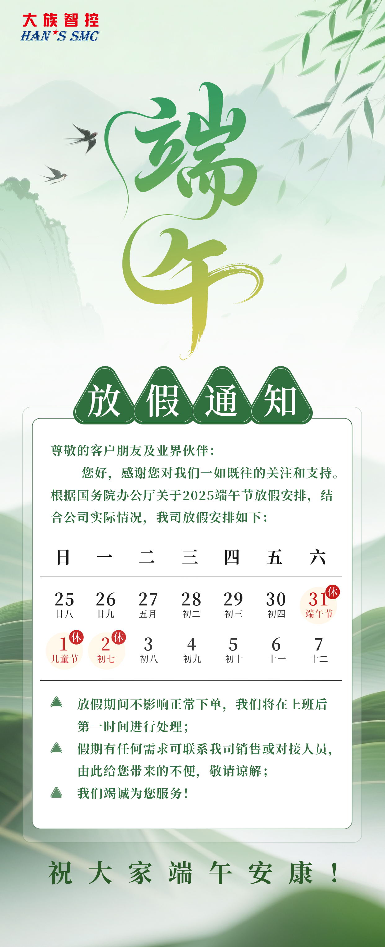 大族智控2025端午節放假通知